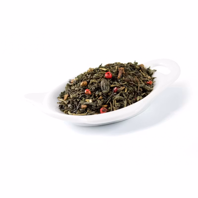 Ingredienser: Grönt te, nejlika, kanel, rosépeppar, romarom, malen kardemumma, naturlig apelsinarom.