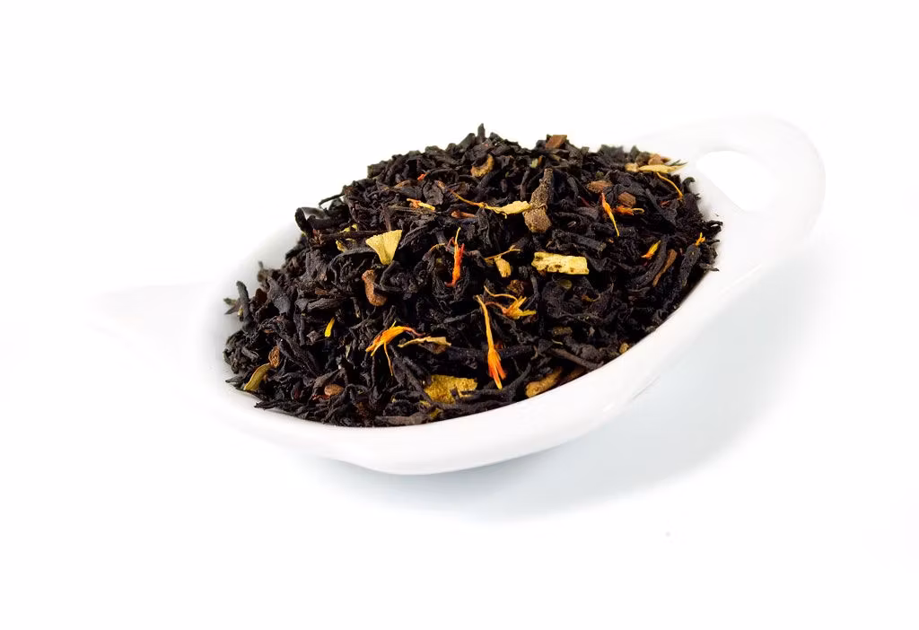 Ingredienser: svart te (Indien), svart te (Kina), kanel, kardemumma, nejlika, citrusskal, naturlig apelsinarom, safflor, svartpeppar, ingefära, gräddarom